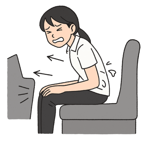 - 座るとき深く腰掛け、膝と股関節が約90度になるように保つことが理想的です。足を組む習慣がある方は、股関節に負担がかかりやすいため控えるようにしてください。また、長時間同じ姿勢で座り続けないように、適度に休憩を挟んで体を動かすことも大切です。